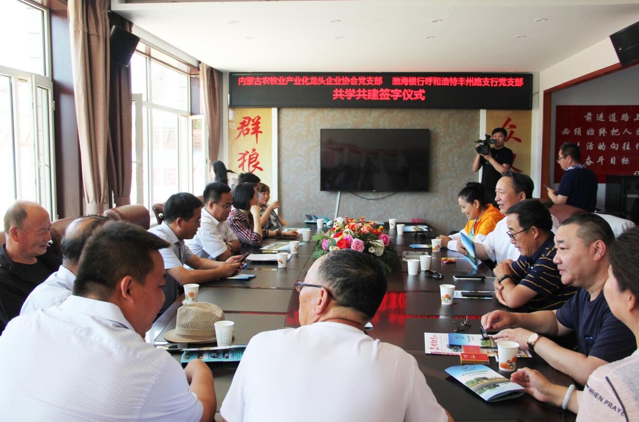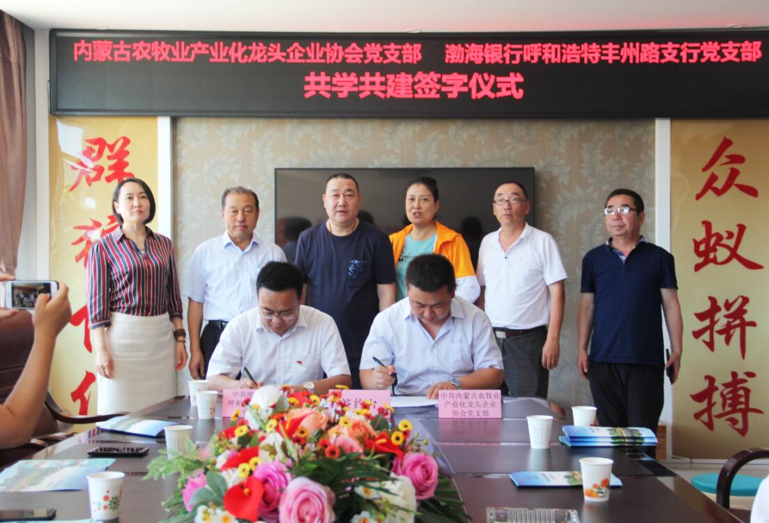 活動(dòng)過程中,為創(chuàng)造性地推進(jìn)黨組織“共學(xué)共建”結(jié)對工作,圍繞新時(shí)代黨的建設(shè)總要求,內(nèi)蒙古農(nóng)牧業(yè)產(chǎn)業(yè)化龍頭企業(yè)協(xié)會黨支部和渤海銀行呼和浩特豐州路支行黨支部簽訂了《共學(xué)共建結(jié)對協(xié)議》。通過結(jié)對共建,在弘揚(yáng)社會正能量、加強(qiáng)愛國主義教育等方面樹立新典型,力爭在構(gòu)建銀企合作關(guān)系等方面取得新突破。