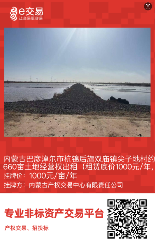 巴彥淖爾市首宗規(guī)范化農(nóng)村產(chǎn)權(quán)交易掛牌!杭錦后旗雙廟鎮(zhèn)尖子地村660畝高標(biāo)準(zhǔn)農(nóng)田經(jīng)營(yíng)權(quán)公開(kāi)出租