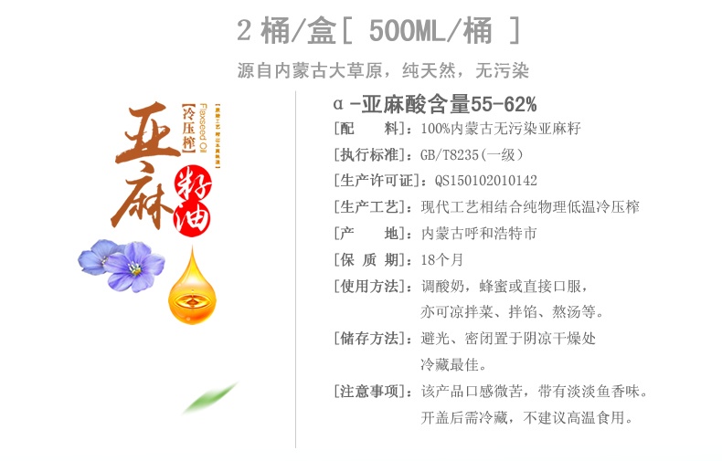 禮盒裝亞麻籽油 金谷金牧冷榨亞麻籽油 食用亞麻籽油 批發(fā)特價