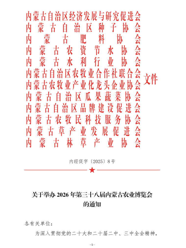關(guān)于舉辦2026年第三十八屆內(nèi)蒙古農(nóng)業(yè)博覽會的通知