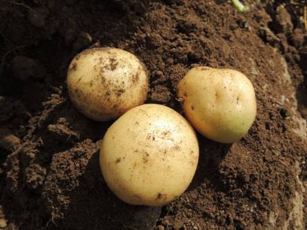 新一號(hào) 中晚熟品種,生育天數(shù)105天左右。干物質(zhì)18.1%,淀粉13~14%,還原糖0.52%,粗蛋白0.65%,維生素C14.4毫克/100克。塊莖橢圓形或圓形,淡黃皮、白肉,表皮光滑,塊大而整齊,芽眼深度中等,塊莖休眠期長(zhǎng),耐貯藏。植株抗晚疫病,塊莖感病,高抗環(huán)腐病,抗PVY、高抗PLRV。