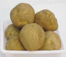 出苗后90—100天收獲,且適于炸片的中熟品種,塊莖圓形或短橢圓形,結(jié)薯集中,薯皮黃褐色,粗糙有網(wǎng)紋,薯肉白色,芽眼淺而少,該品種也適用于全粉加工,不耐干旱高溫,在干旱條件下,塊莖內(nèi)部容易產(chǎn)生褐色斑點,塊莖過大易產(chǎn)生空芯,影響其品質(zhì),應(yīng)適當(dāng)密植,畝株數(shù)應(yīng)保持4500株—5000株,同時應(yīng)注意防晚疫病。