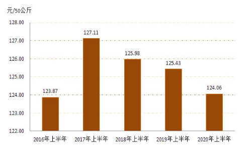 1.小麥:1、2月份春節(jié)假期疊加新冠肺炎疫情,糧企停工停產(chǎn),市場(chǎng)交易趨于平淡,小麥?zhǔn)召?gòu)價(jià)格整體穩(wěn)定。3月份之后,隨著新冠肺炎疫情得到有效控制,各地復(fù)工復(fù)產(chǎn)復(fù)學(xué)的大范圍推進(jìn),截止12月份全區(qū)小麥每50公斤平均收購(gòu)價(jià)格為124.06元,同比下降1.09%,詳見(jiàn)圖3。(來(lái)源:內(nèi)蒙古自治區(qū)發(fā)展和改革委員會(huì))