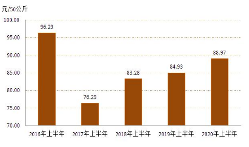 4   20162020年上半年全區(qū)玉米收購(gòu)價(jià)格對(duì)比圖